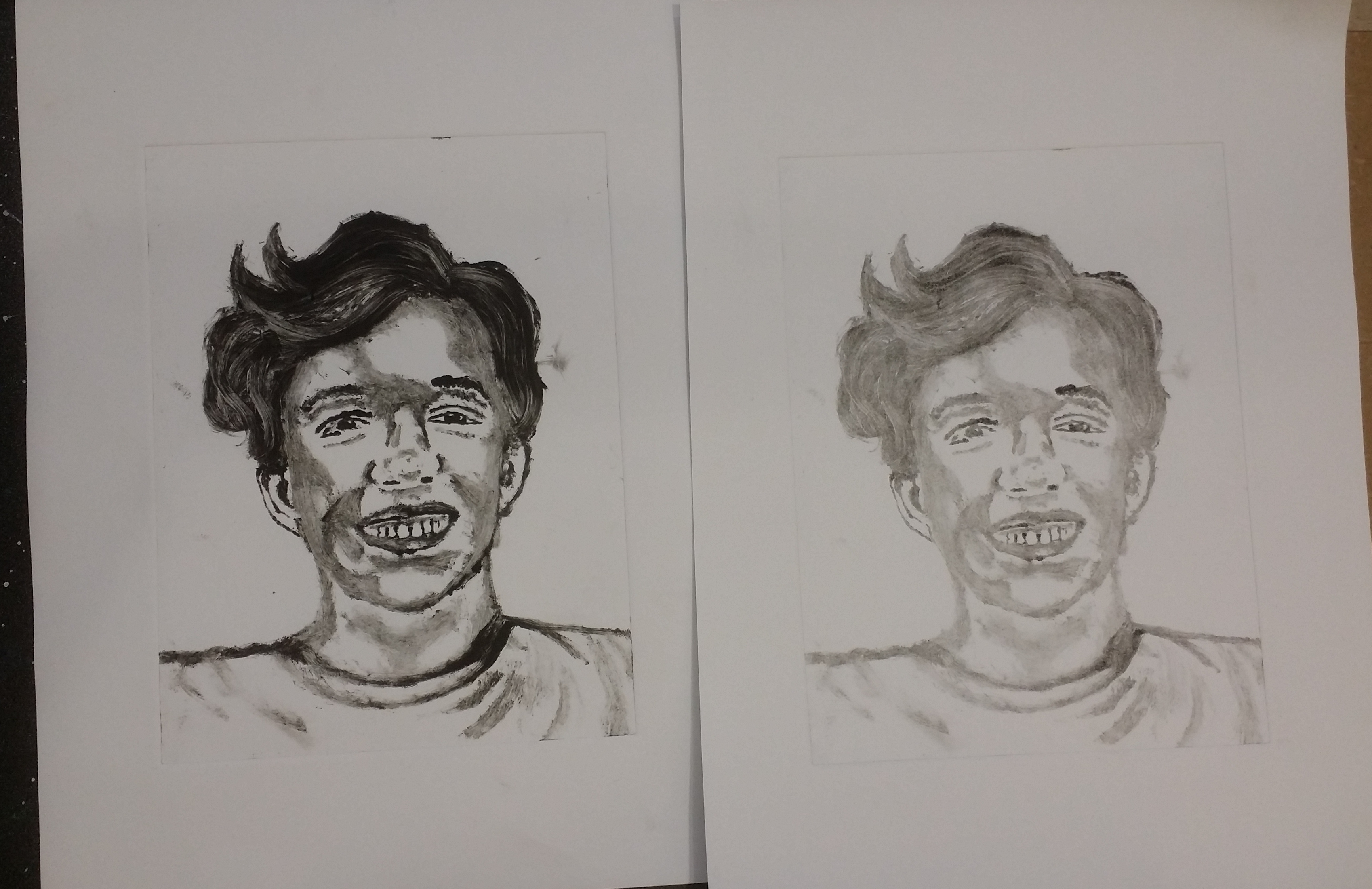Self portrait monotype print and ghost print