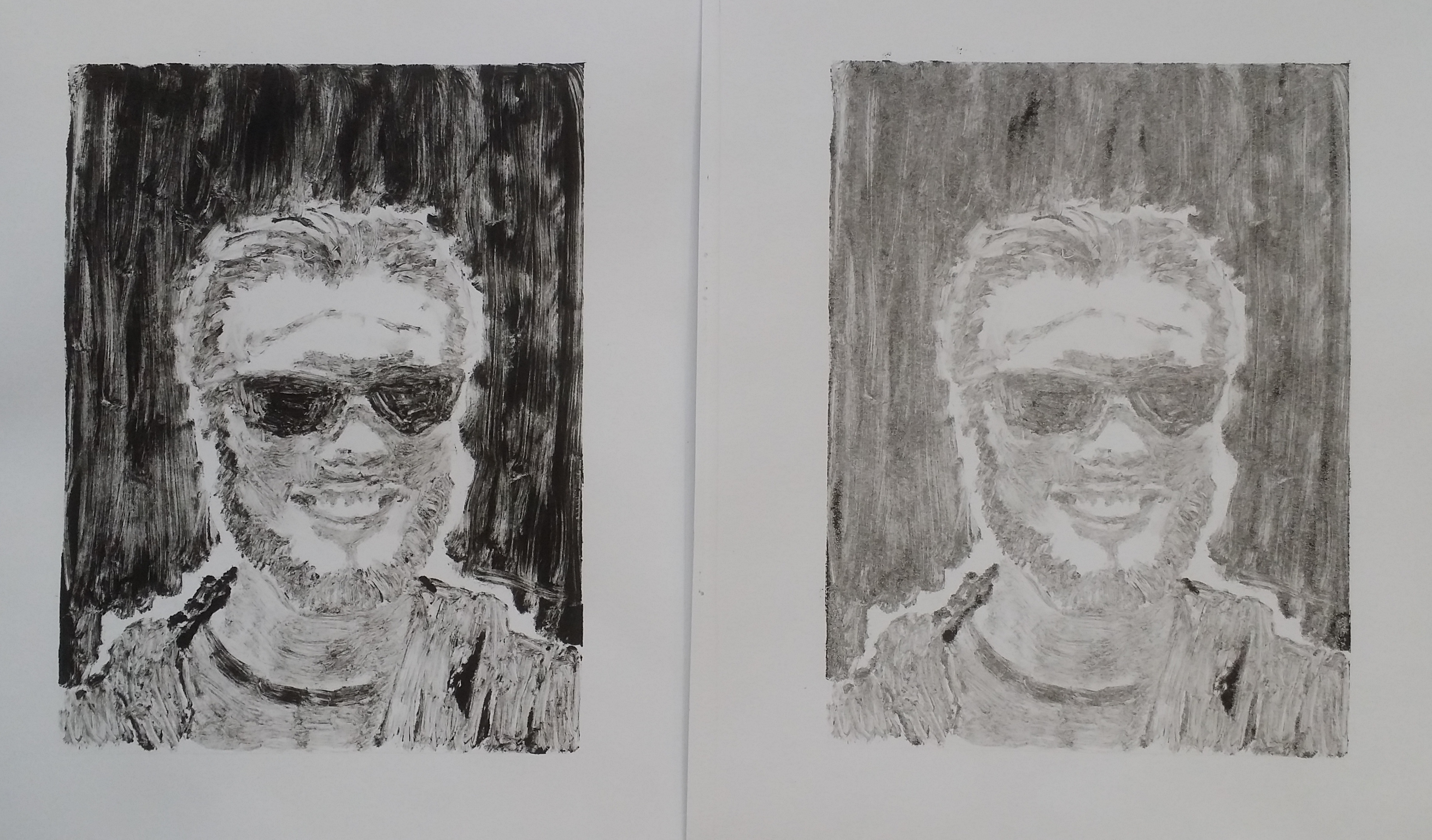 Self portrait monotype print and ghost print