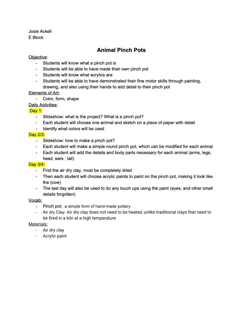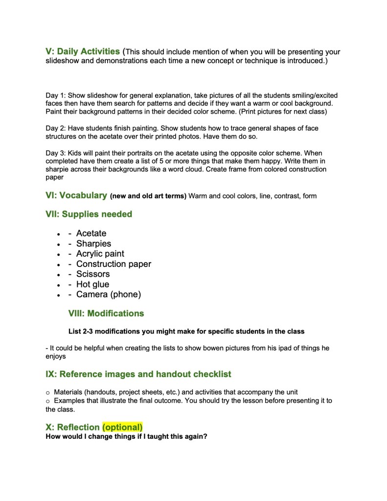 Art Integration & Education is designed for students interested in a career in art education, art therapy, physical therapy, occupational therapy, and/or special education. Each student will be required to work in partnership with and/or assist developmentally delayed students. Students will be acquainted with a variety of theories and explanations for various disabilities. In this creative and highly interactive process, students will experience, generate and encourage mutual respect and equality. This course will include drawing, painting, printmaking, and sculpture as material processes. Each student will be required to write lesson plans and present 2 lessons by the end of the year. Homework, research, written tests and a journal will be required.